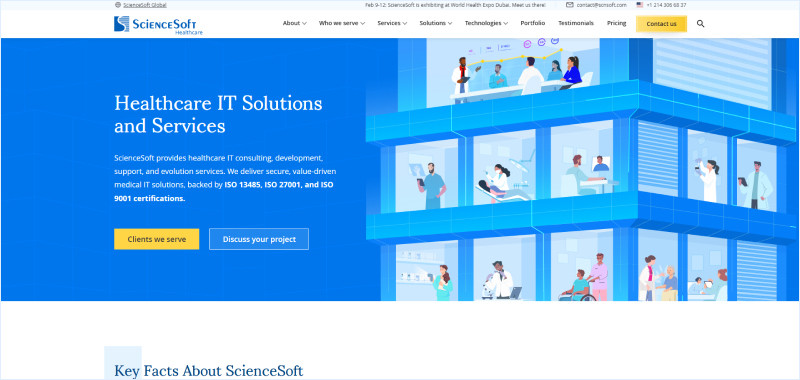 ScienceSoft is an ISO 9001, ISO 27001, and ISO 13485 certified healthcare IT consulting and software development company with more than 35 years of industry experience. Founded in 1989, the company has grown into a global technology partner with a team of 750+ IT professionals delivering enterprise-grade digital health solutions.