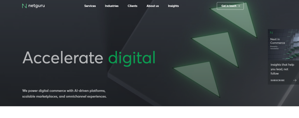 Netguru, based in Poland, is a reliable Vue.js development agency that helps businesses create digital products with clean code and functional design. With a solid foundation in Vue.js, they build various solutions, including SaaS platforms, internal tools, customer portals, and eCommerce applications.